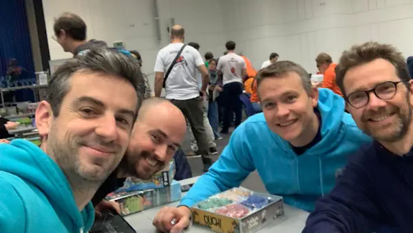 Enfin et surtout, les gens, ce sont aussi les ludochons. C’était ma première virée ludochonne, pas encore de Cannes ou de Valmeinier à mon actif, donc l’expérience était multiple ! Et que dire si ce n’est un grand merci à cette équipe de joueurs qui m’a fait sentir pendant 4 jours comme si on avait élevé des cochons ensemble, ou comme si j’avais passé chaque Essen en leur compagnie. Personne n’a, à ma connaissance, essayé de me semer. On a bien tenté de m’empoisonner avec des curry würst, mais il paraît que c’est une tradition locale, rien de véritablement malveillant donc.