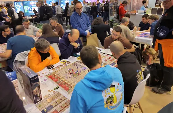 J'ai partagé avec vous mon expérience de Essen. Très personnelle, il est vrai… mais comment faire autrement, alors que chacun vit Essen à sa façon, chacun en fait sa propre expérience. Pendant que certains préfèrent déambuler dans les allées, à la recherche du jeu, de la pépite, certains vont préférer tester le plus de jeux possibles, frôlant l’overdose, d’autres vont chercher les blockbusters, pour essayer les jeux dont on parle, avant tout le monde. L’important pour tous m’a semblé de s’imprégner de l’ambiance générale, de vivre pleinement cette effervescence collective autour du jeu.